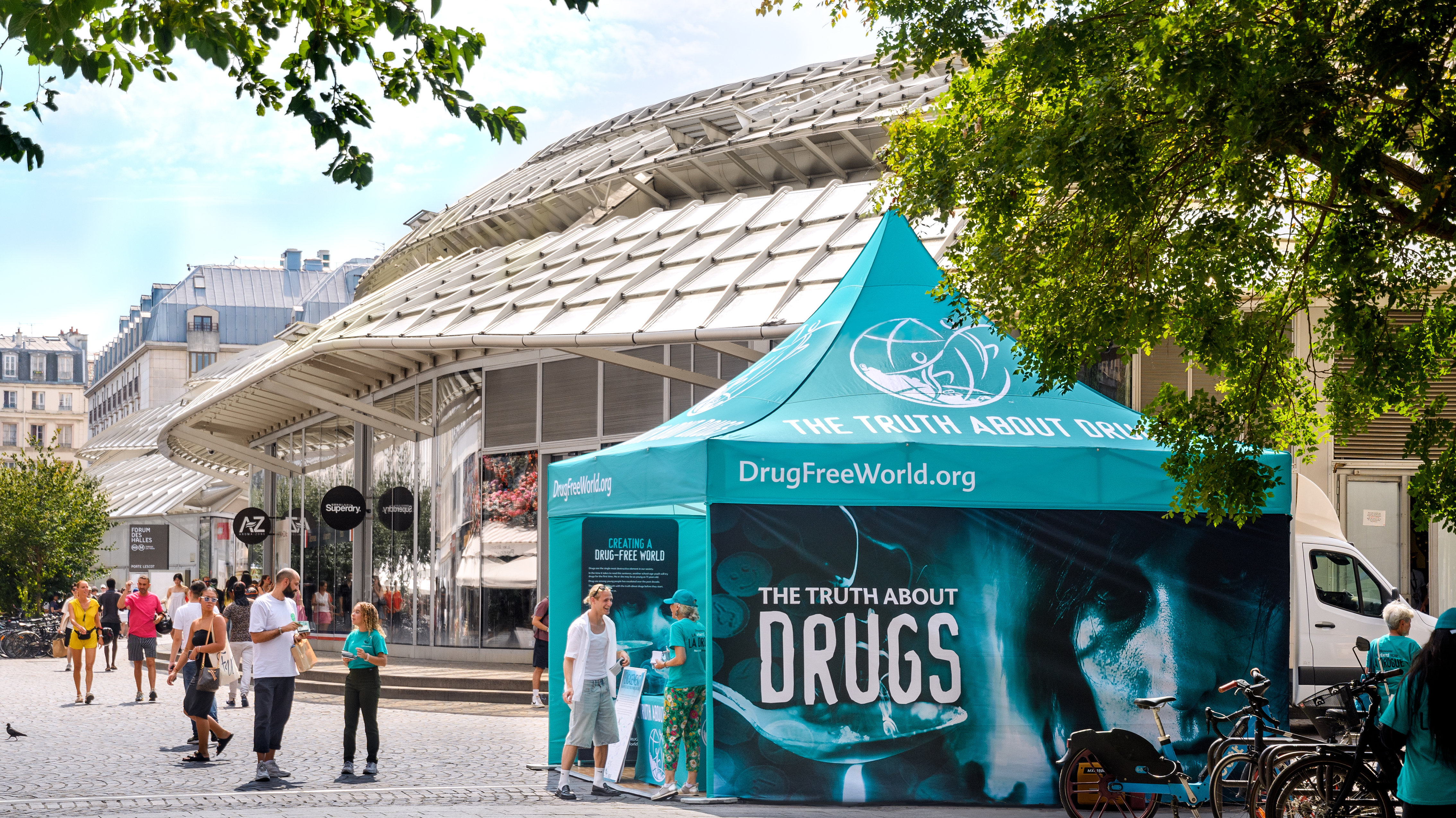 Πρόσφατα, πόλεις διεθνούς σημασίας σε κάθε γωνιά του κόσμου είδαν μια φωτεινή γαλαζοπράσινη κορυφή να ξεχωρίζει στη μέση των δρόμων τους, φέρνοντας το μήνυμα της Αλήθειας για τα Ναρκωτικά. Το Ίδρυμα για Έναν Κόσμο Χωρίς Ναρκωτικά έχει καινούριες κινητές εκθέσεις που πηγαίνουν παντού για να εκπαιδεύσουν τους ανθρώπους σχετικά με τους κινδύνους των ναρκωτικών και να αποτρέψουν τα παιδιά από το να πέσουν θύματα του εθισμού.